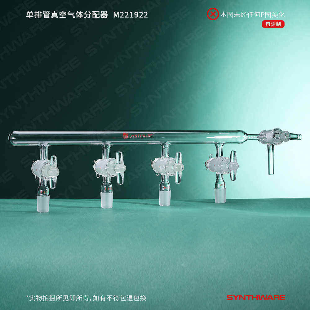 单排管真空气体分配器,实心玻璃节门,24/40,右T型节门 M222440