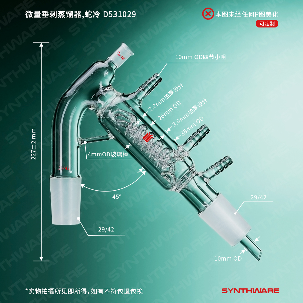 微量垂刺蒸馏器,蛇冷,磨口:29/42,温度计磨口:10/18 D541029