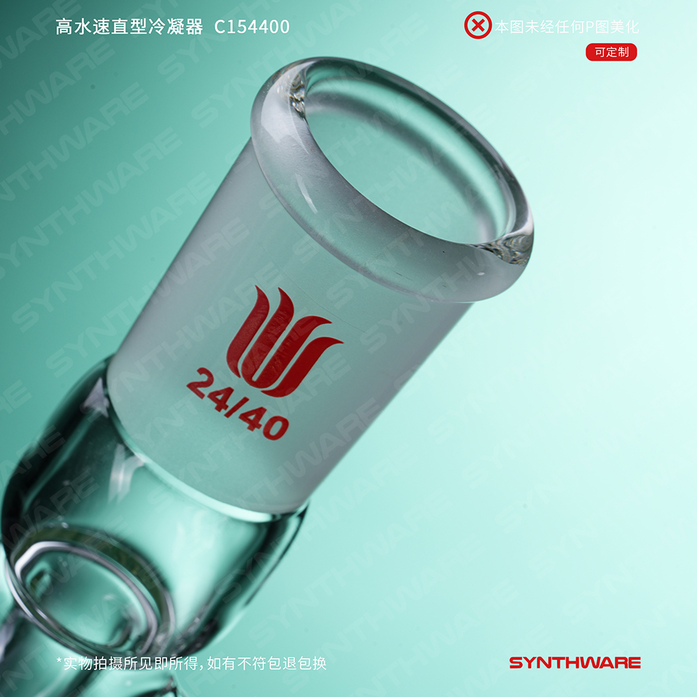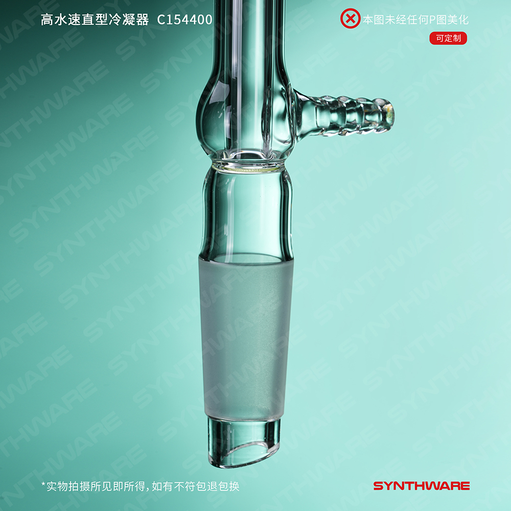 # 冷凝器上下两端为标准锥度磨口,上端内磨口由金刚砂研磨,锥度1:10经正弦规测试。下端外磨口由无心磨精密研磨,保证连接密封性。