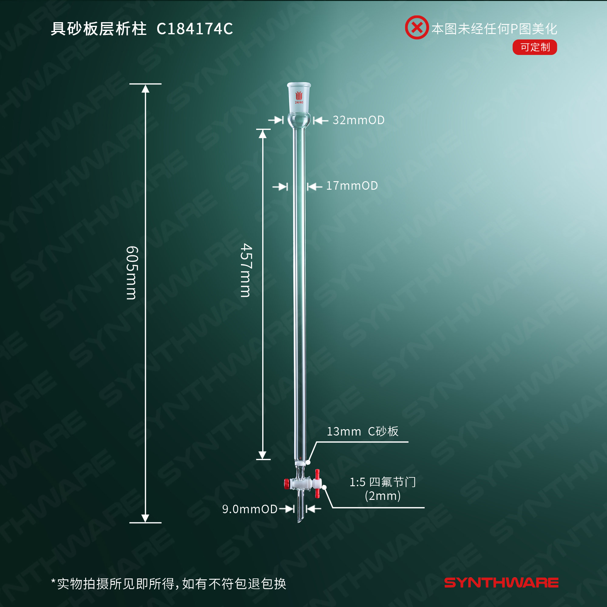 具砂板层析柱,φ17mm,有效长457mm,节门孔径:2mm,24/40 C184174C