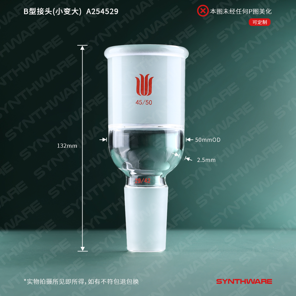 接头类 > B型接头 > B型接头(小口变大口) > SYNTHWARE > B型接头(小变大),上磨口:45/50,下磨口:29/42 A254529