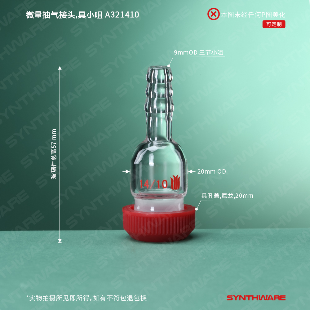直型抽气接头,玻璃节门,14/20,2mm节门孔径 A611420