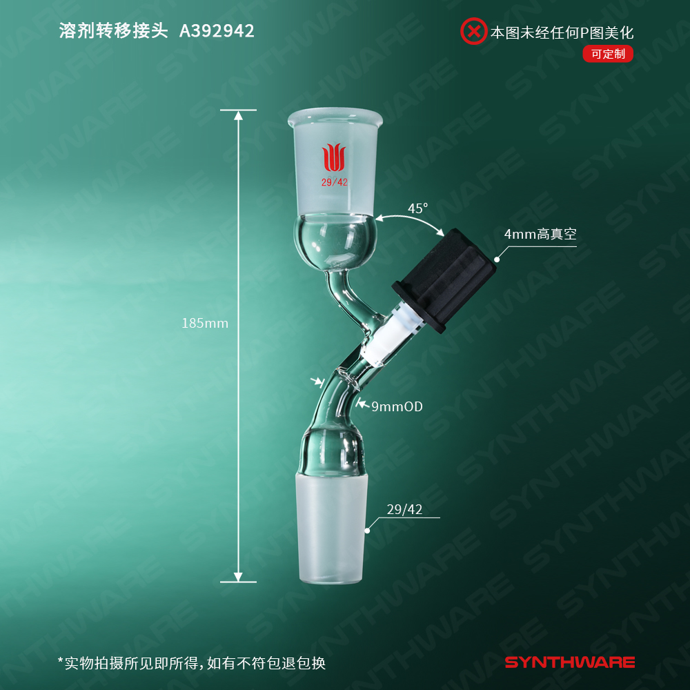 溶剂转移接头,4mm高真空阀,29/42,总高×宽:185×75mm A392942