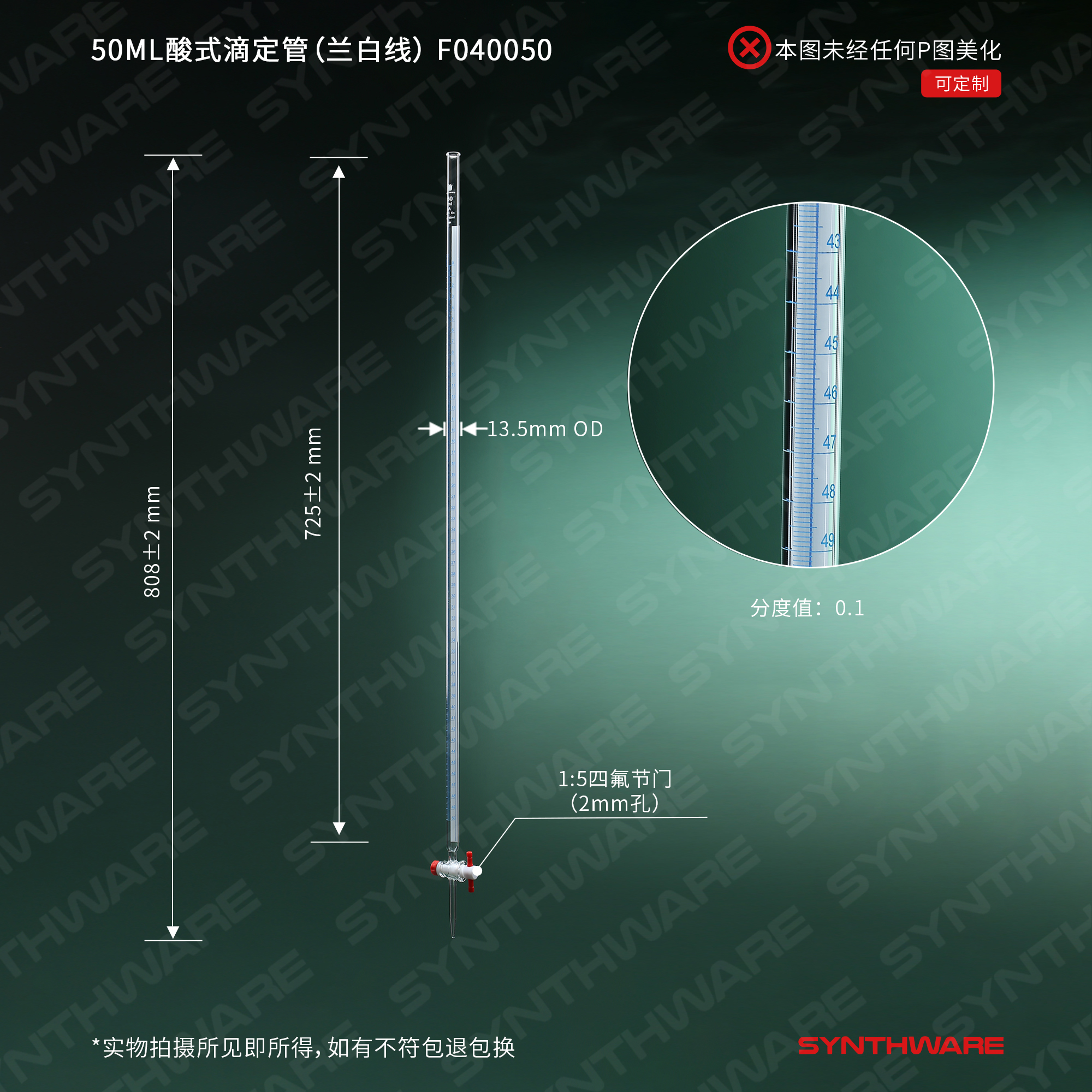 50ML酸式滴定管(兰白线)(2MM四氟节门),(酸碱通用) F040050