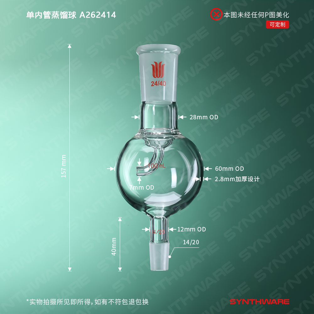 单内管蒸馏球,上磨口:24/40,下磨口:14/20,100ml A262414