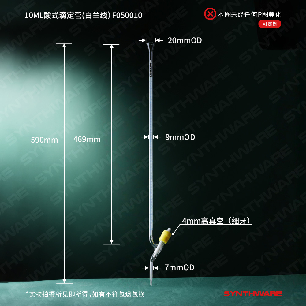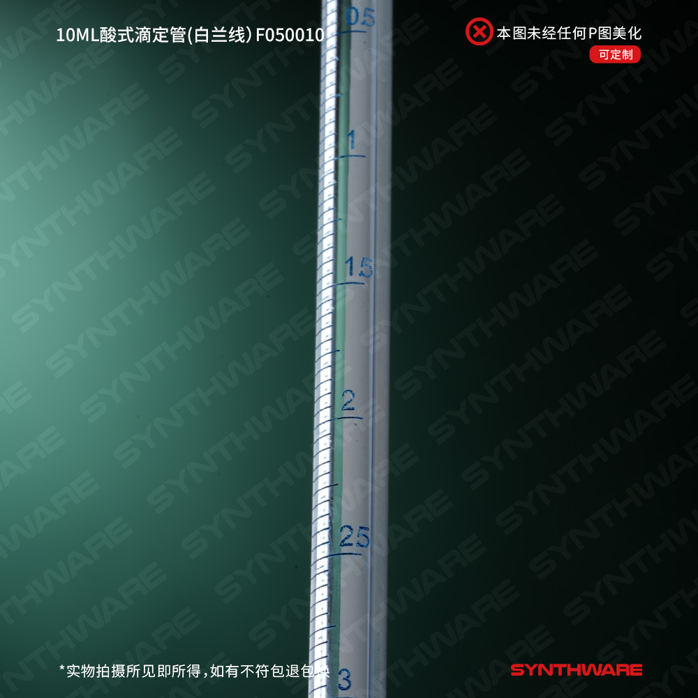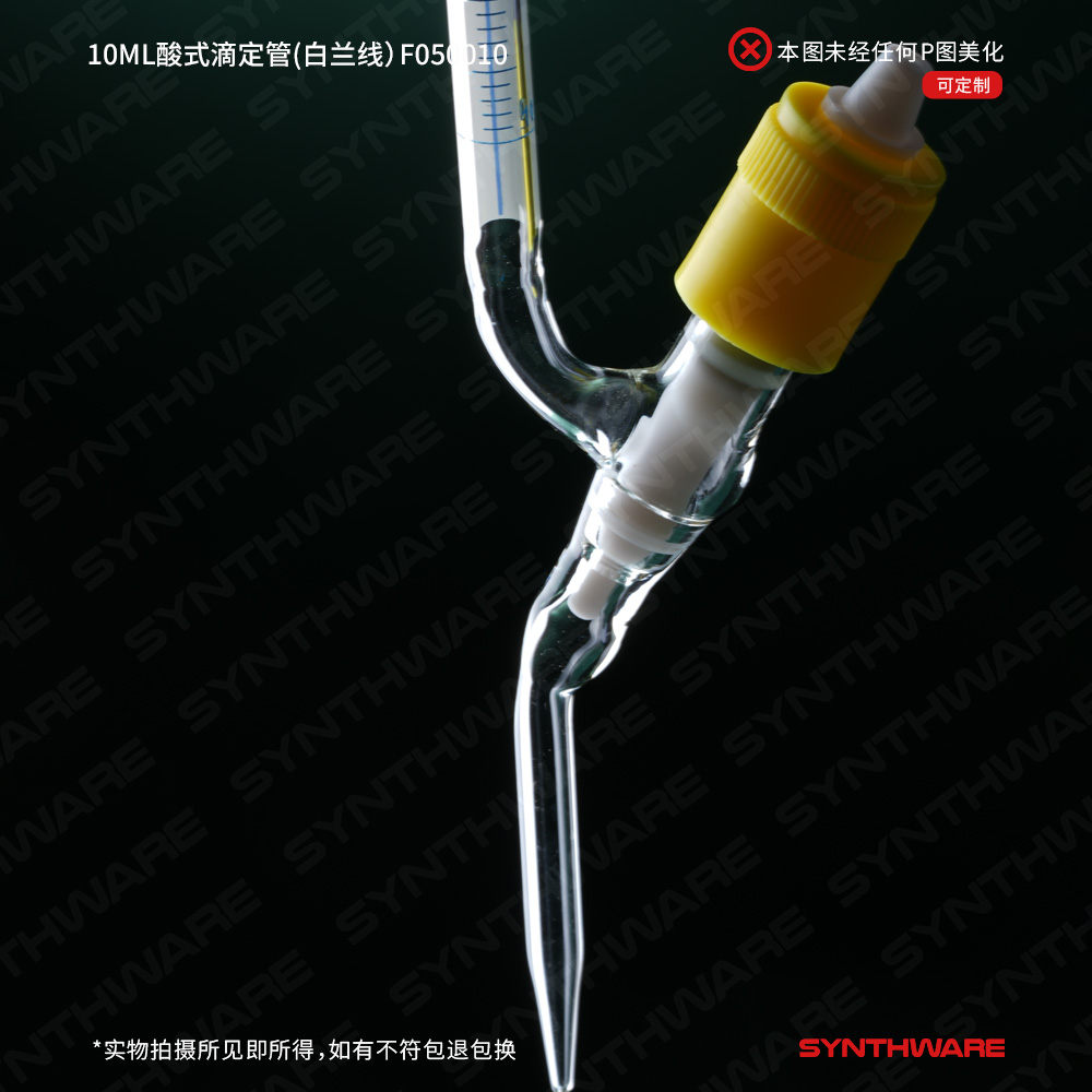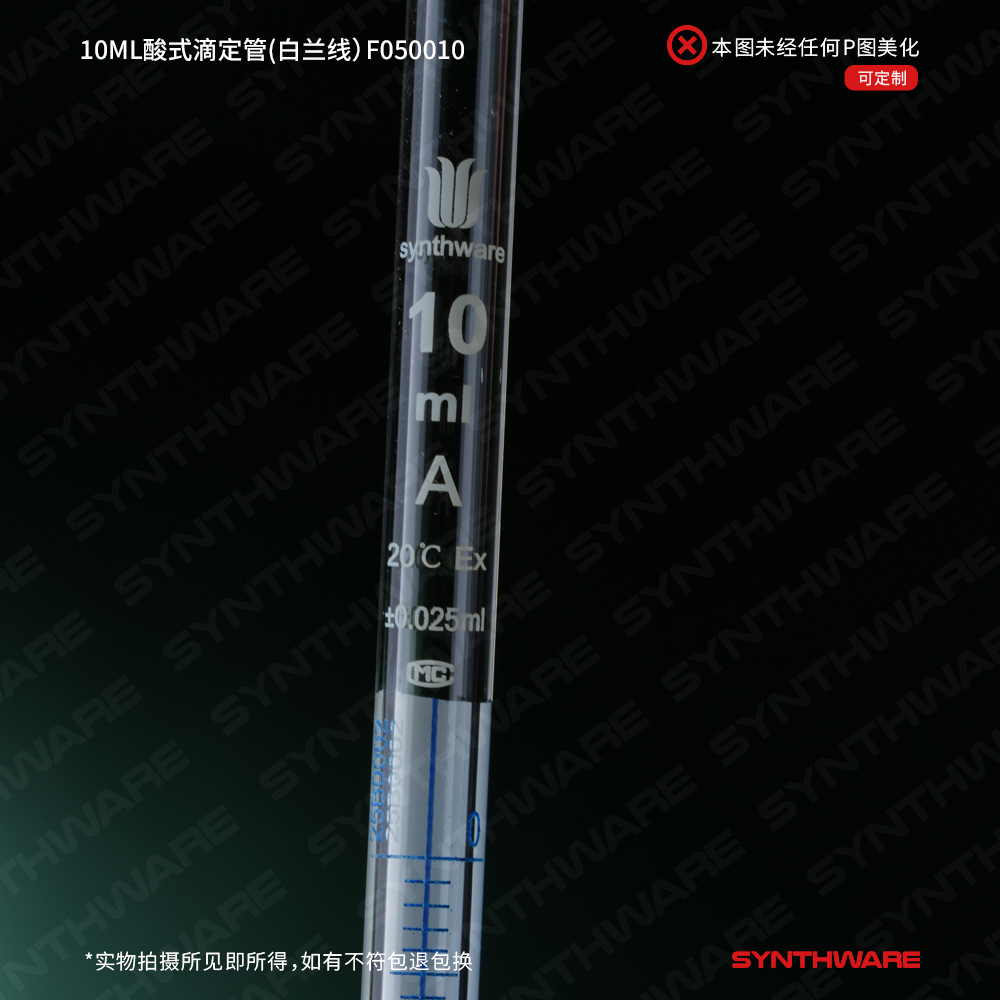 10ML酸式滴定管 (蓝白线)高硼硅透明玻璃,(新型高真空截门)(酸碱通用) F050010