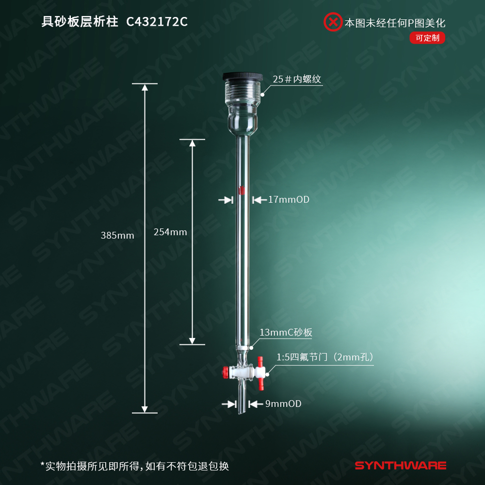 具砂板层析柱,25#内螺纹,φ17mm,2mm节门孔径,有效长:254mm C432172C