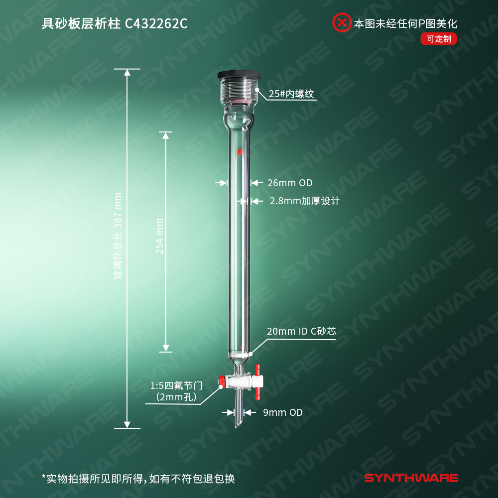 具砂板层析柱,25#内螺纹,φ26mm,2mm节门孔径,有效长:254mm C432262C