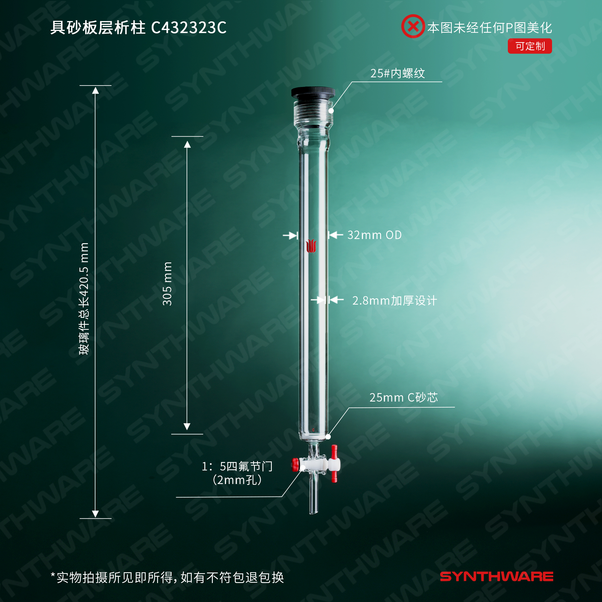 具砂板层析柱,25#内螺纹,φ32mm,2mm节门孔径,有效长:305mm C432323C