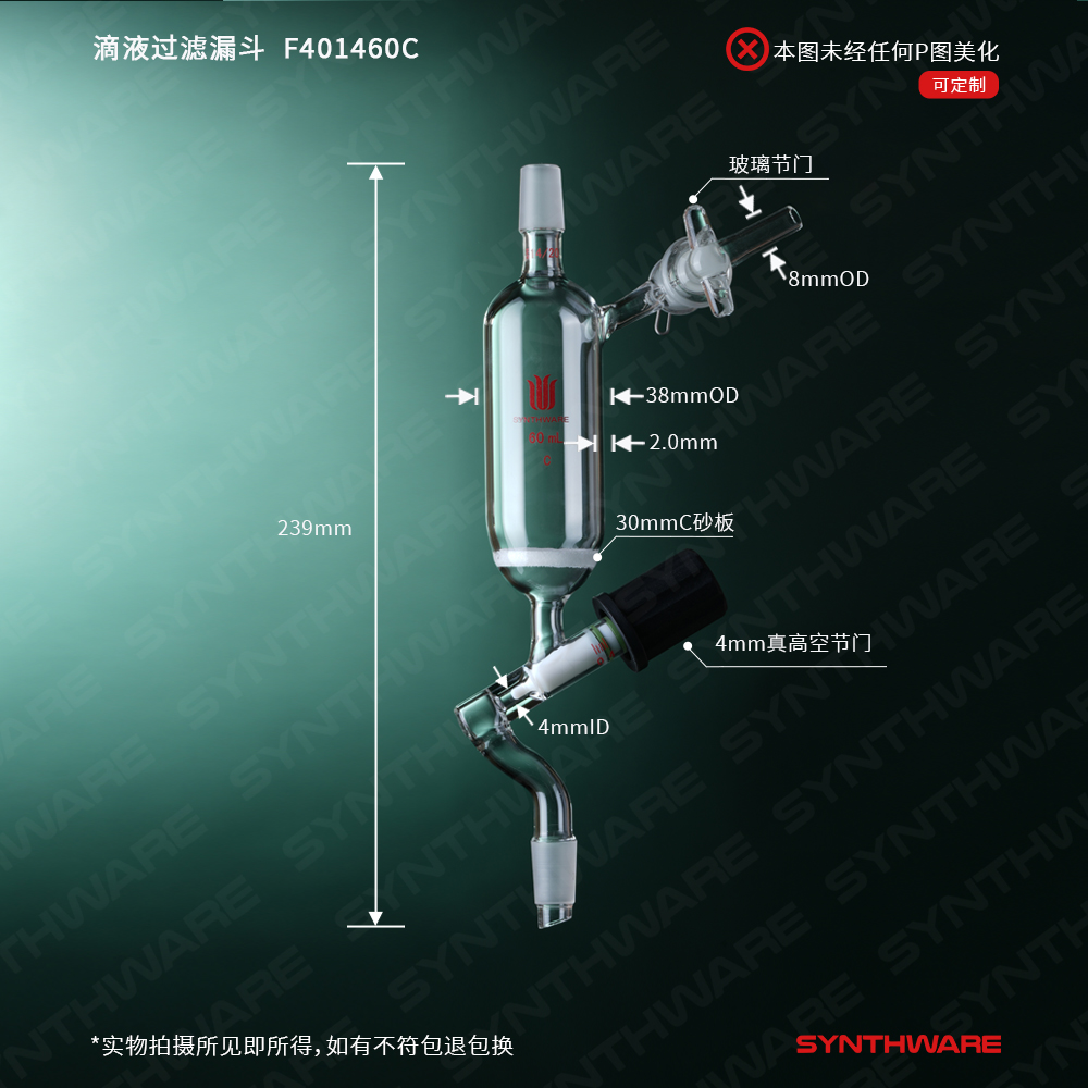滴液过滤漏斗,过滤器,4mm高真空阀,外14/20,60mL,G3 F401460M