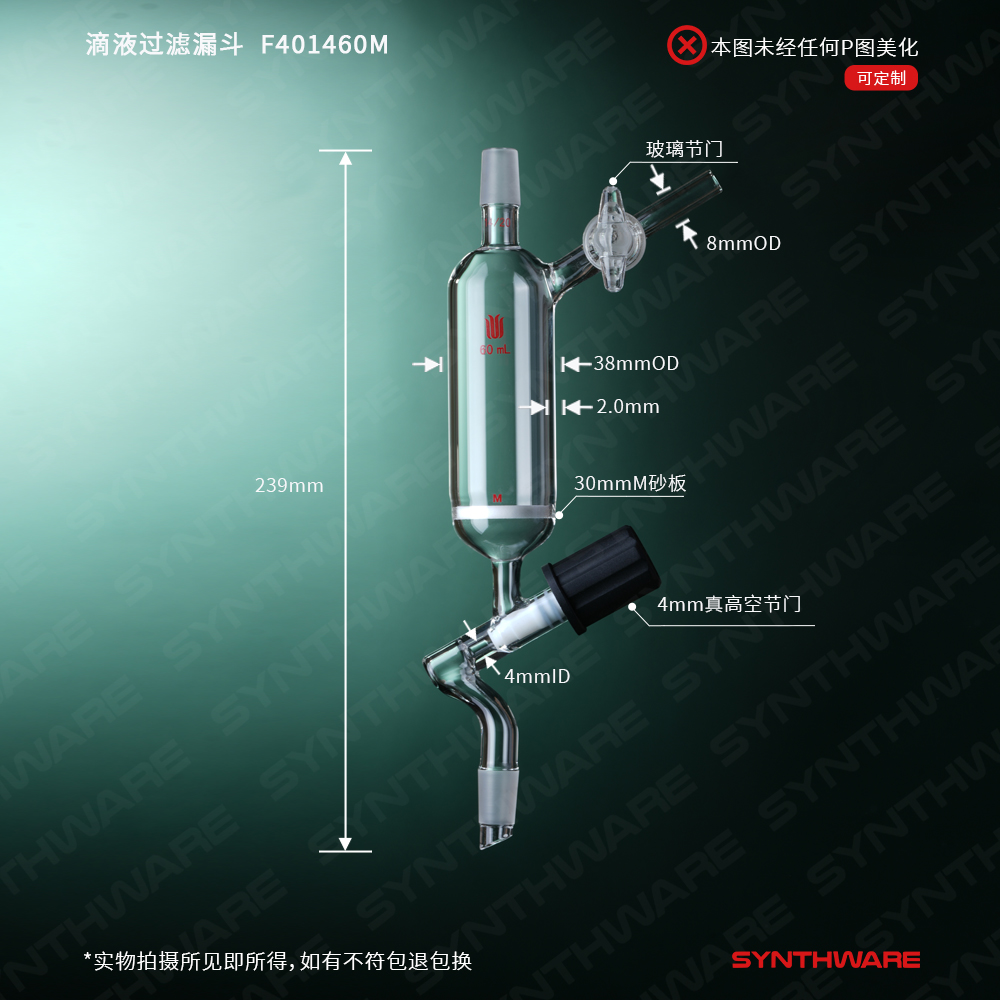 滴液过滤漏斗,过滤器,4mm高真空阀,外14/20,60mL,G3 F401460M