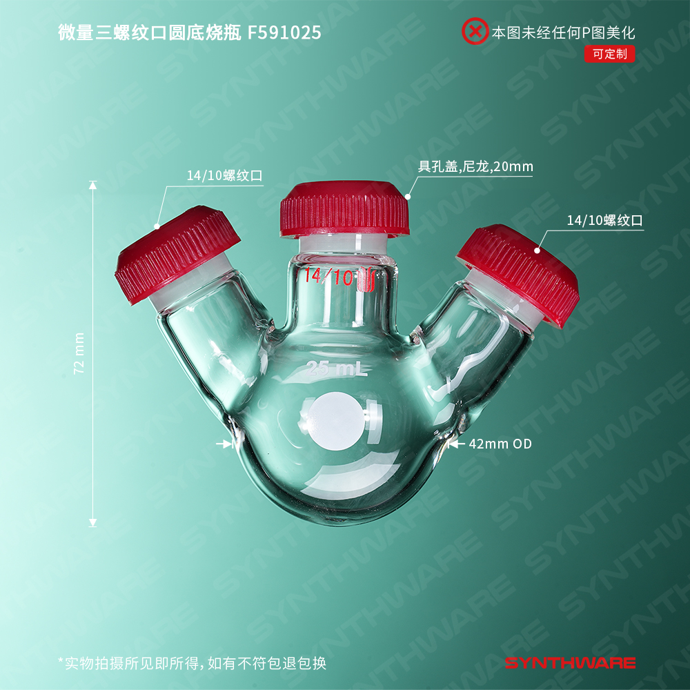 微量三螺纹口圆底烧瓶,14/10,25ml F591025