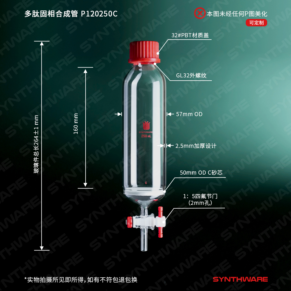 多肽固相合成管,1000ML,#外经80MM,32螺纹口,G3砂板 P151000M