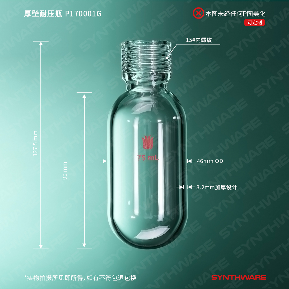 厚壁耐压瓶,75ml,15#螺纹口,无配件 P170001G