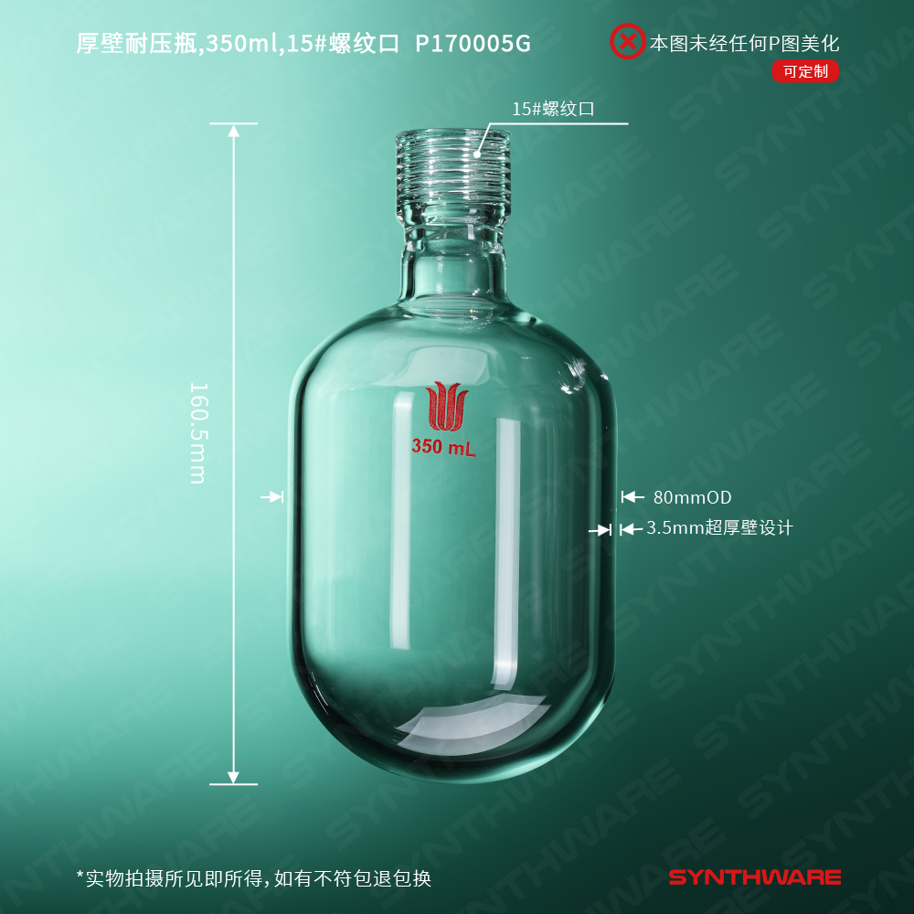 厚壁耐压瓶,350ml,25#螺纹口,无配件 P170006G