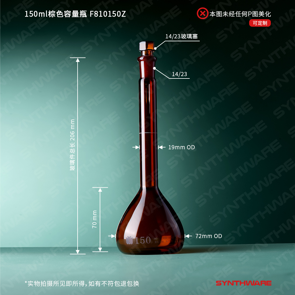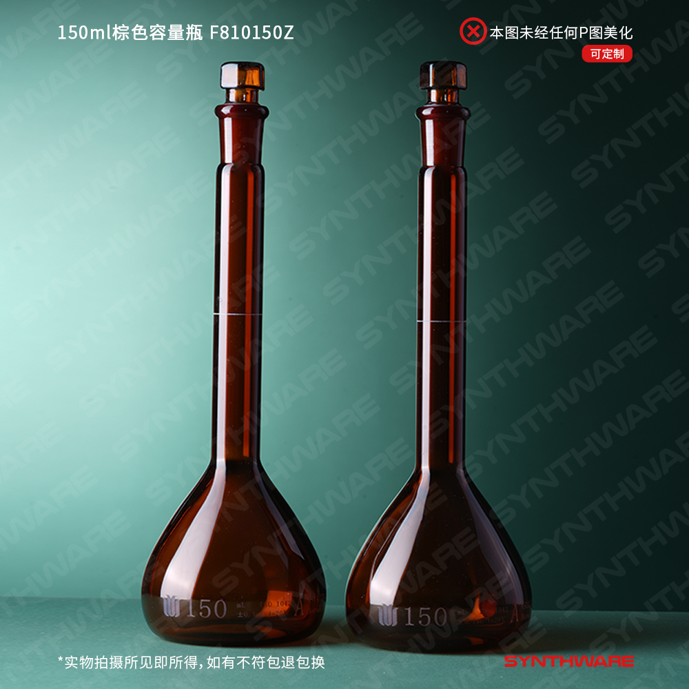 14/23口 150ml棕色容量瓶,标配玻璃塞,带个体检测证书,2支/盒 F810150Z