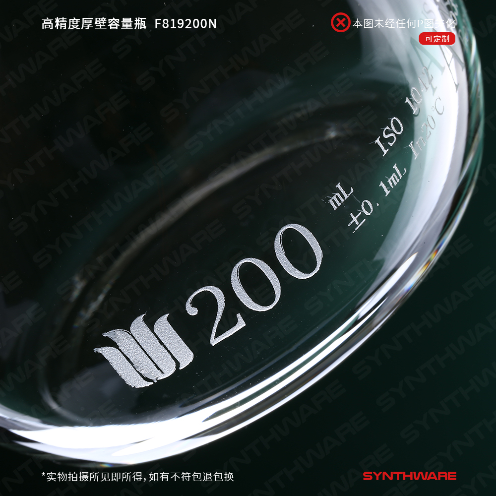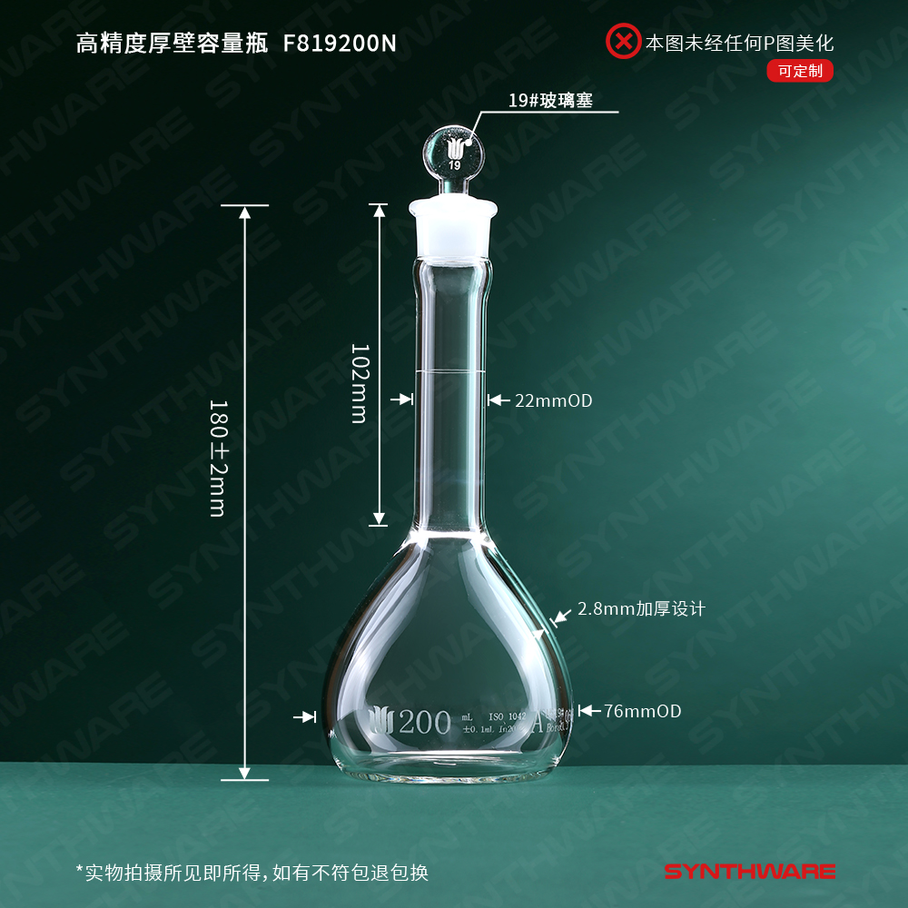 高精度厚壁容量瓶(附常数A级 带编码) 19#口 200ML 配19#玻璃塞 F819200N