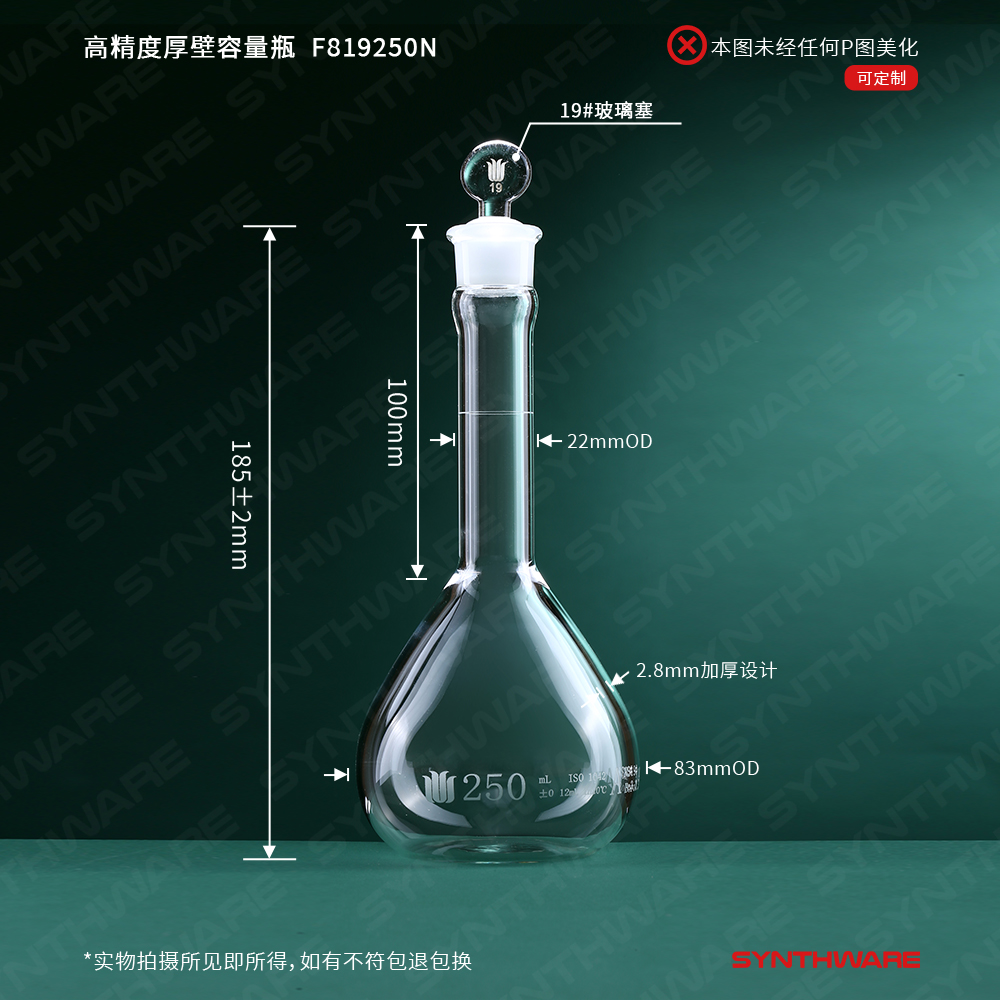 高精度厚壁容量瓶(附常数A级 带编码) 19#口 250ML 配19#玻璃塞 F819250N