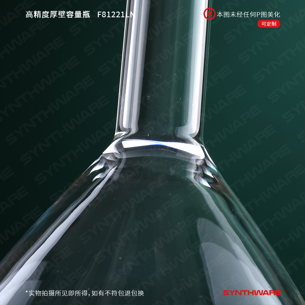 # A级厚壁透明容量瓶,带个体检测证书,标配玻璃塞。