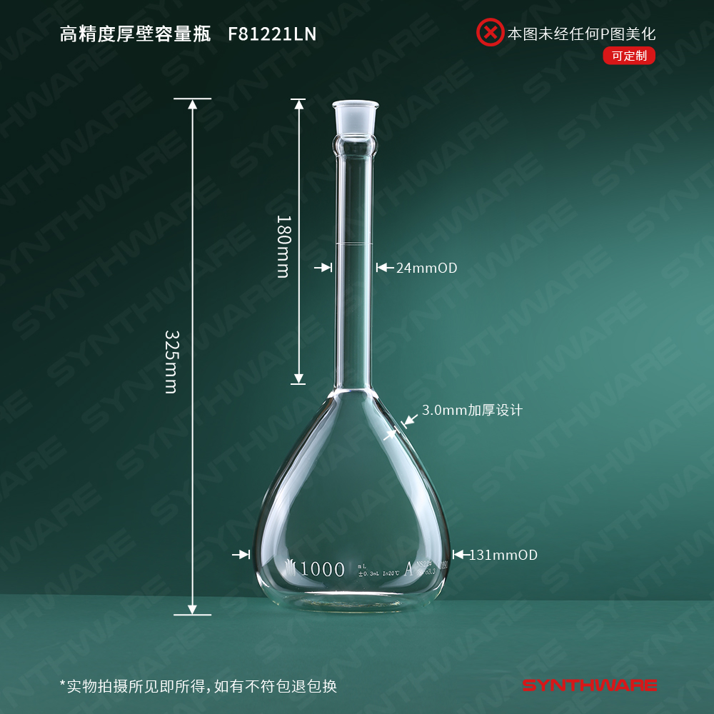 高精度厚壁容量瓶(附常数A级 带编码)22#口1000ML配22#空芯玻璃塞 F81221LN