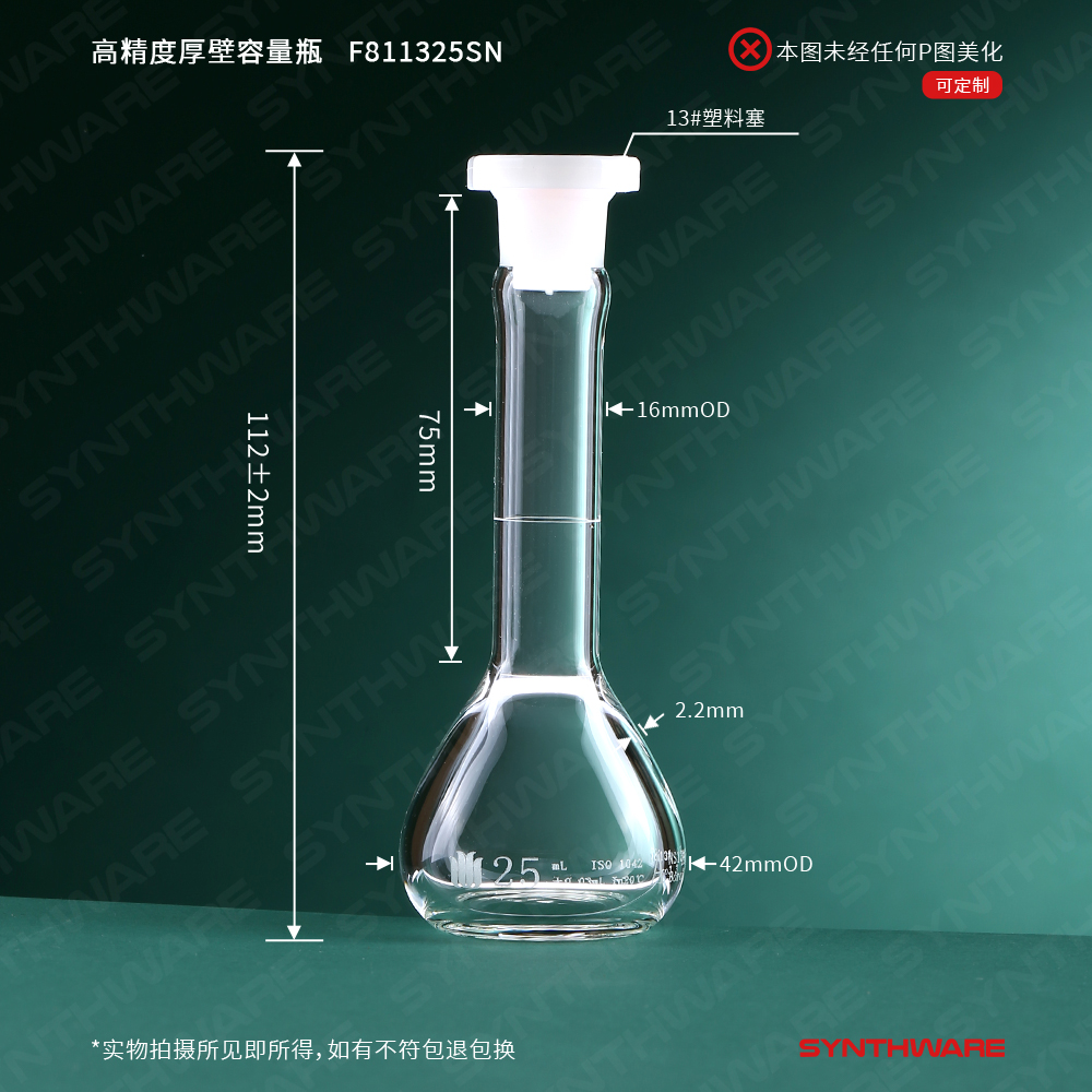 高精度厚壁容量瓶(附常数A级 带编码) 13#口 25ML 配13#塑料塞 F811325SN