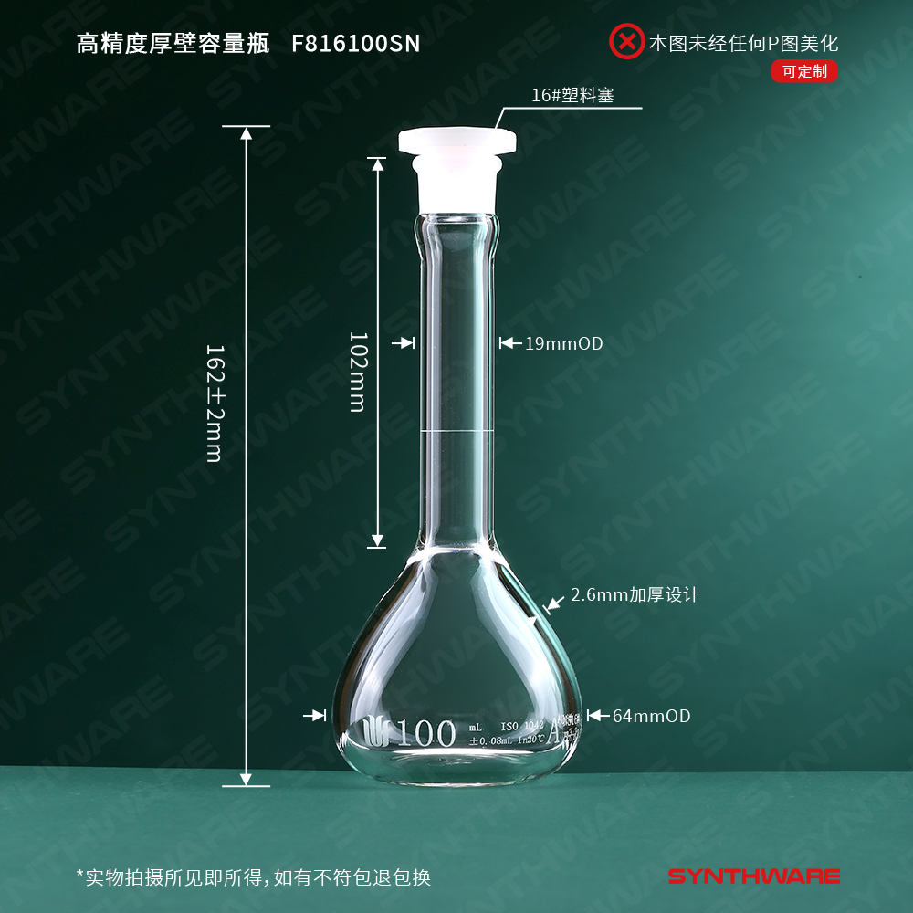 高精度厚壁容量瓶(附常数A级 带编码) 16#口 100ML 配16#塑料塞 F816100SN