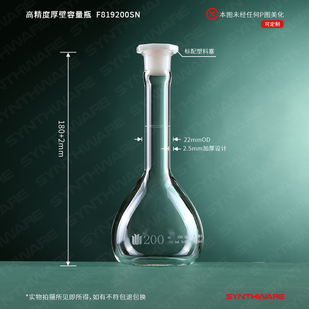 高精度厚壁容量瓶(附常数A级 带编码) 19#口 200ML 配19#塑料塞 F819200SN