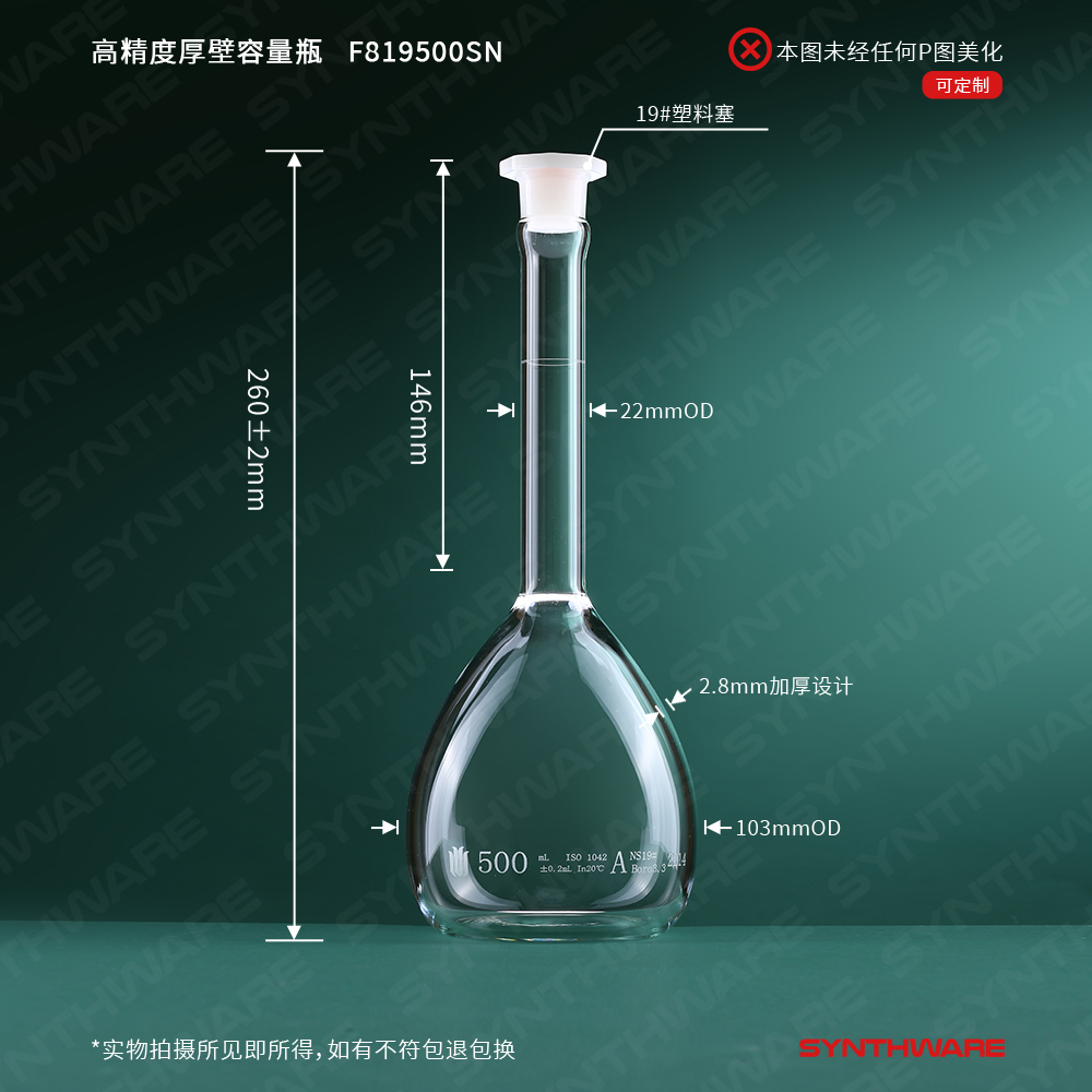高精度厚壁容量瓶(附常数A级 带编码) 19#口 500ML 配19#塑料塞 F819500SN