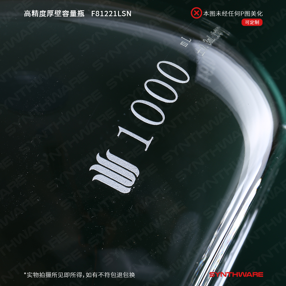# 厚壁透明容量瓶,粗管制成,结实耐用。刻度激光标定,精准,清晰,耐用。
