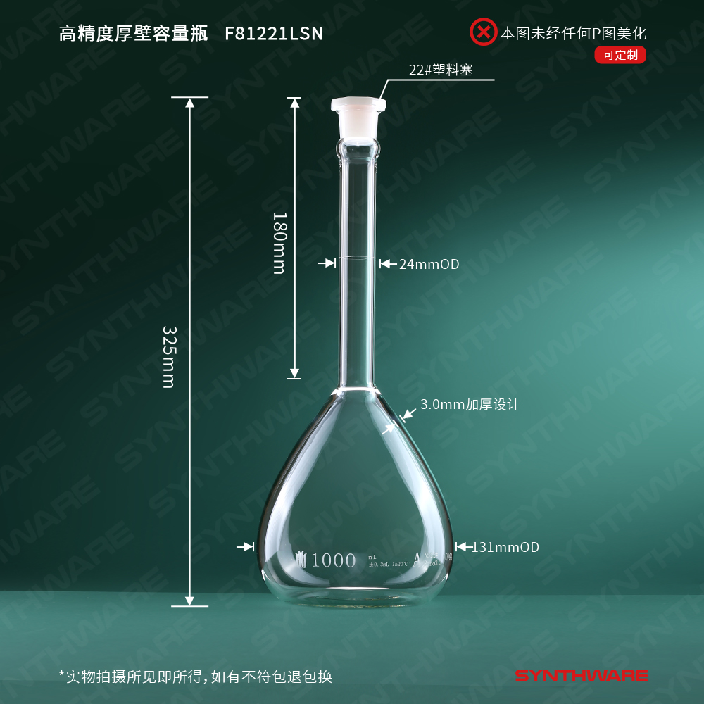 高精度厚壁容量瓶(附常数A级 带编码) 22#口 1000ML 配22#塑料塞 F81221LSN