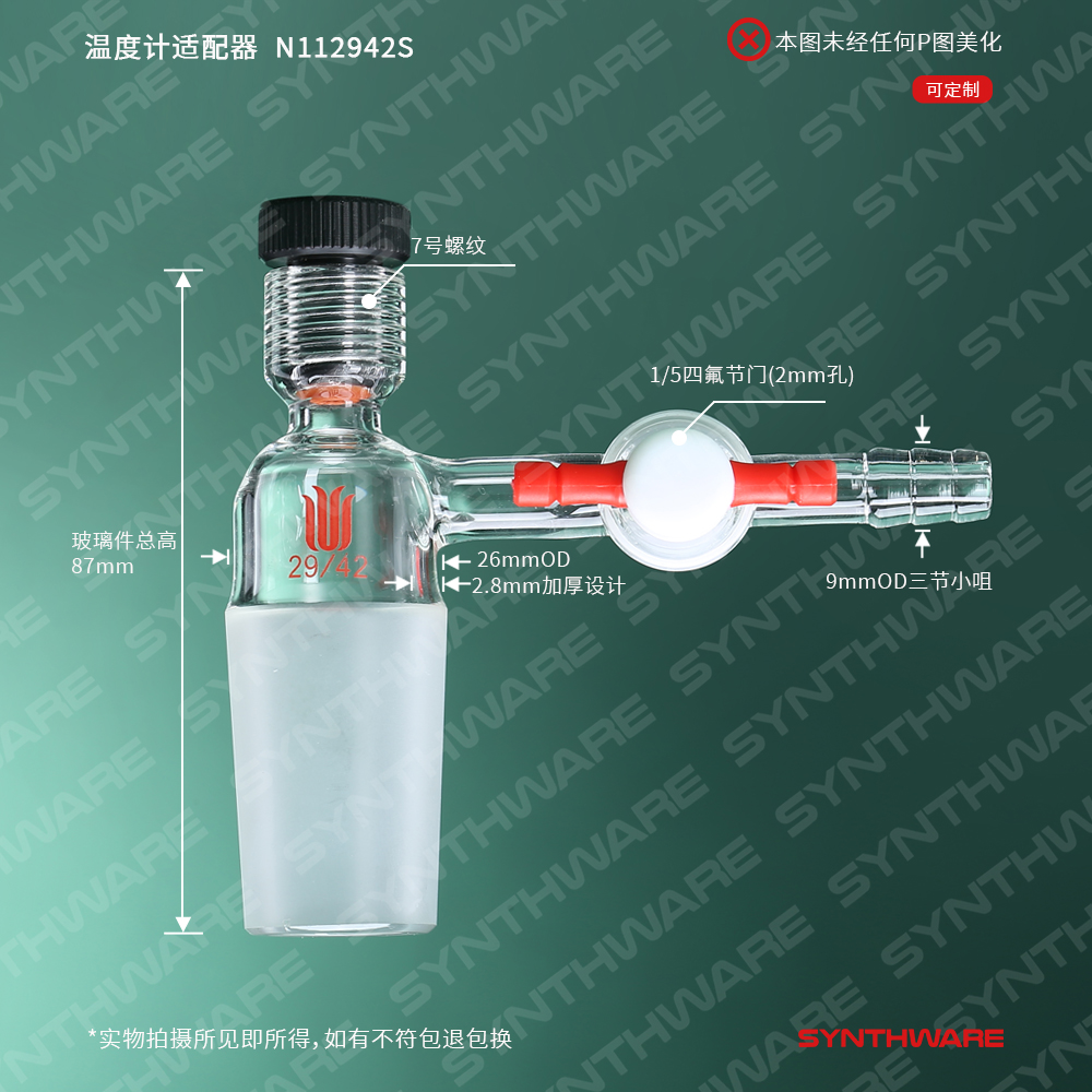 # 此接头将通气口与温度计接口二合一,可将温度计插入多口烧瓶中,监测体系温度。
