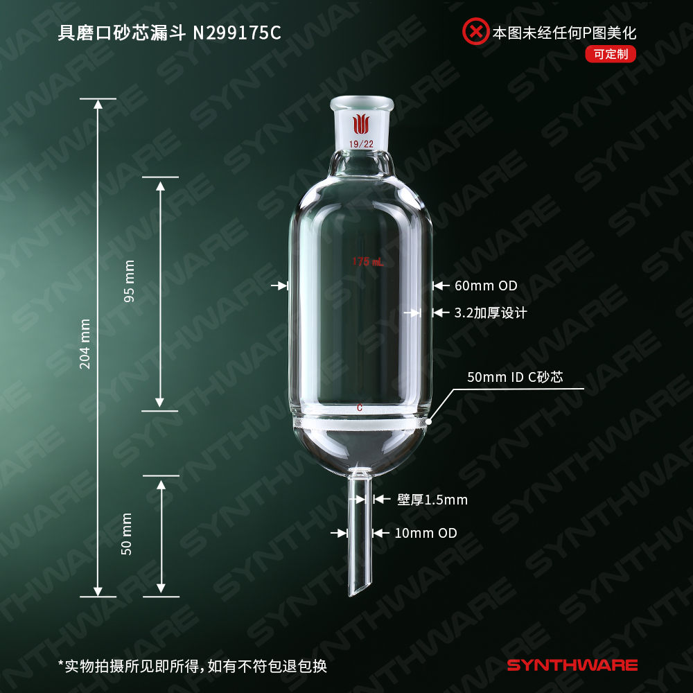 具磨口砂芯漏斗,磨口:19/22,容量175ML,砂板:G3 N299175M