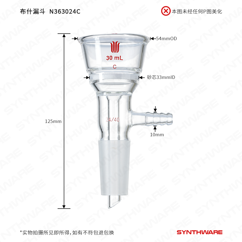 具磨口大口径砂芯布什漏斗,30ml,24/40,砂芯孔隙规格:G2 N363024C