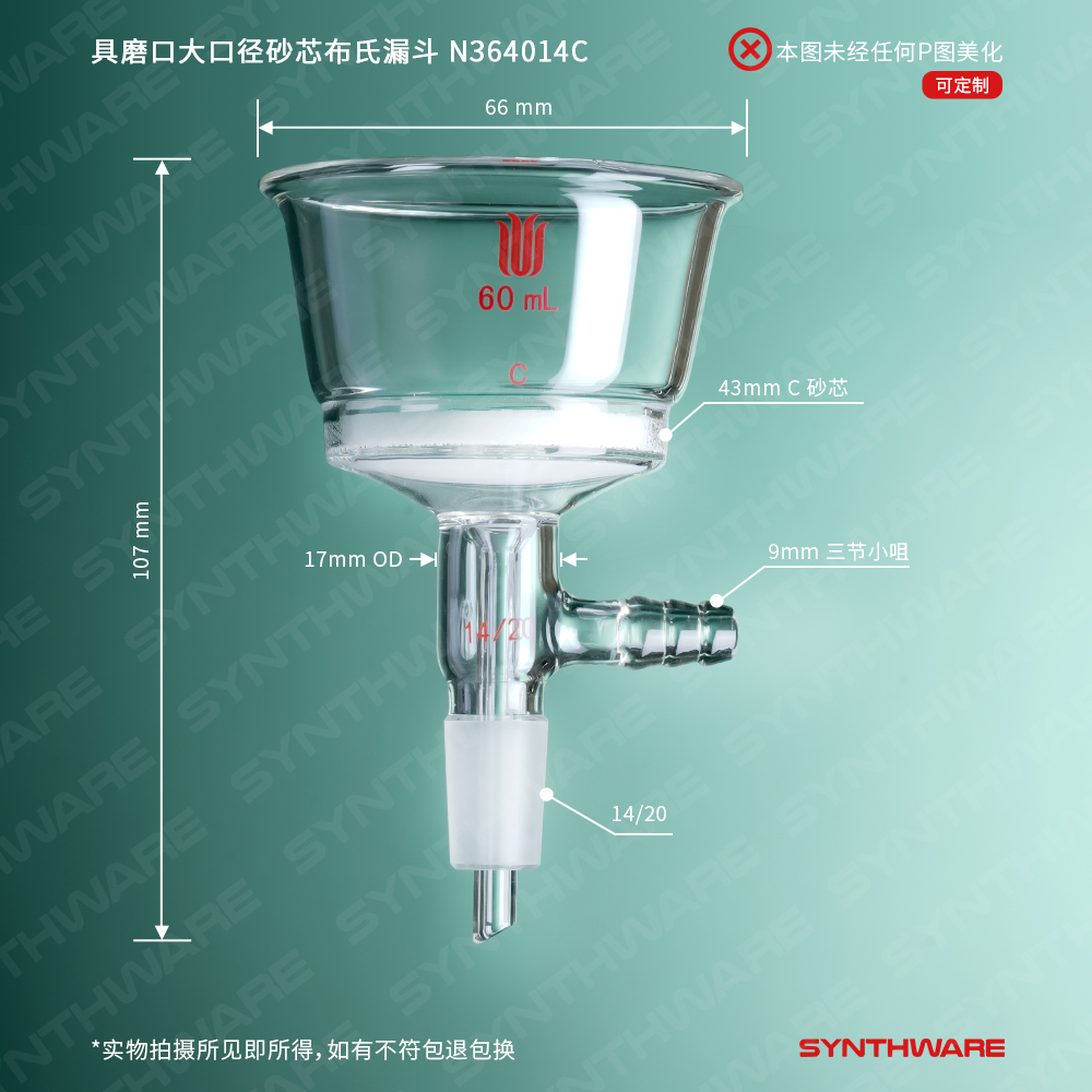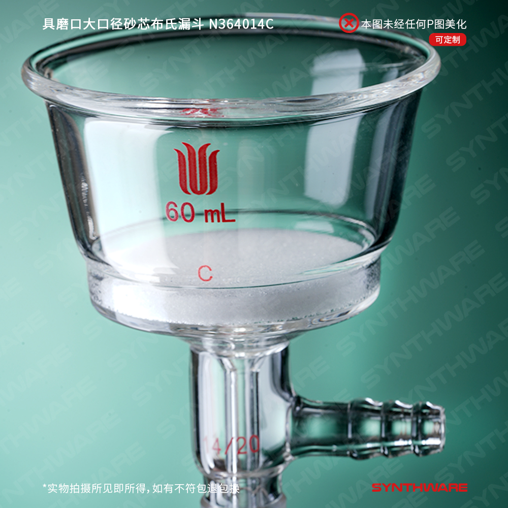 具磨口大口径砂芯布氏漏斗,60ml,14/20,砂芯孔隙规格:G4 N364014F
