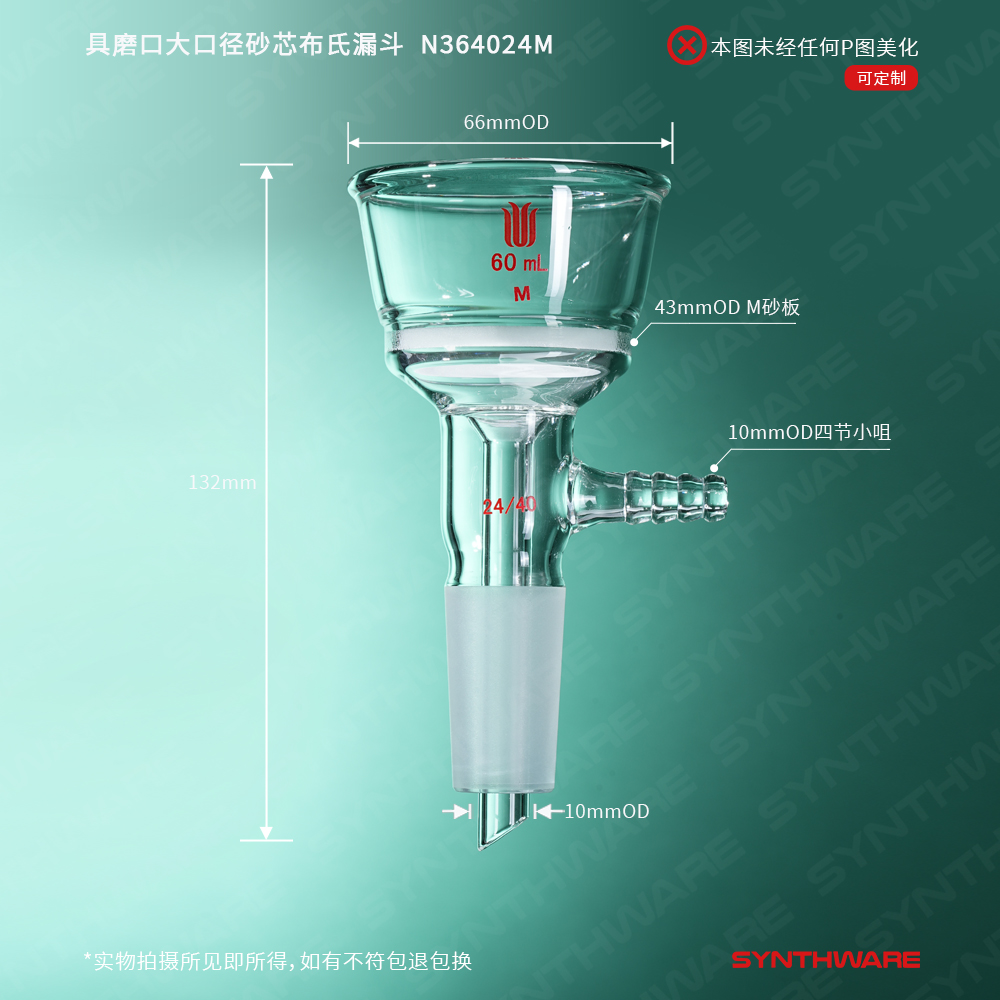 具磨口大口径砂芯布氏漏斗,60ml,24/40,砂芯孔隙规格:G4 N364024F