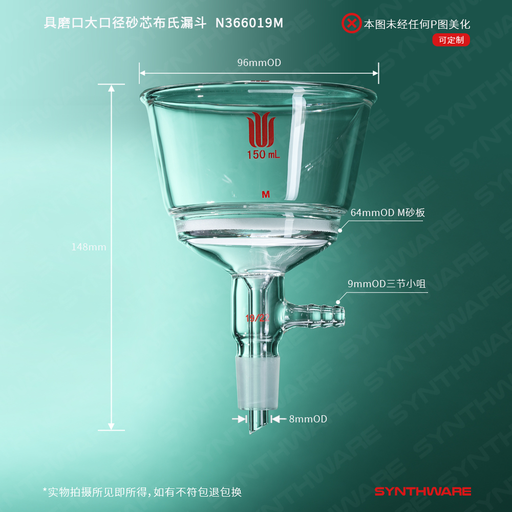 具磨口大口径砂芯布氏漏斗,100ml,19/22,砂芯孔隙规格:G3 N365019M