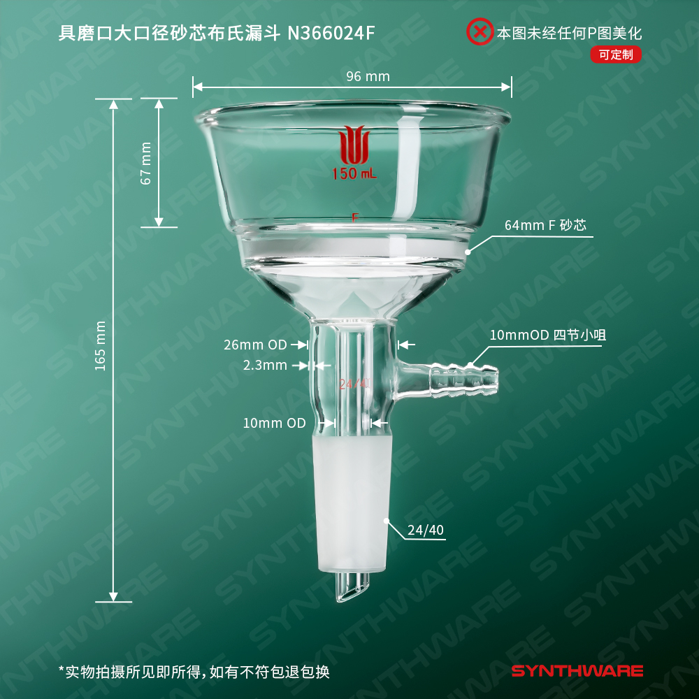 具磨口大口径砂芯布氏漏斗,100ml,24/40,砂芯孔隙规格:G4 N365024F