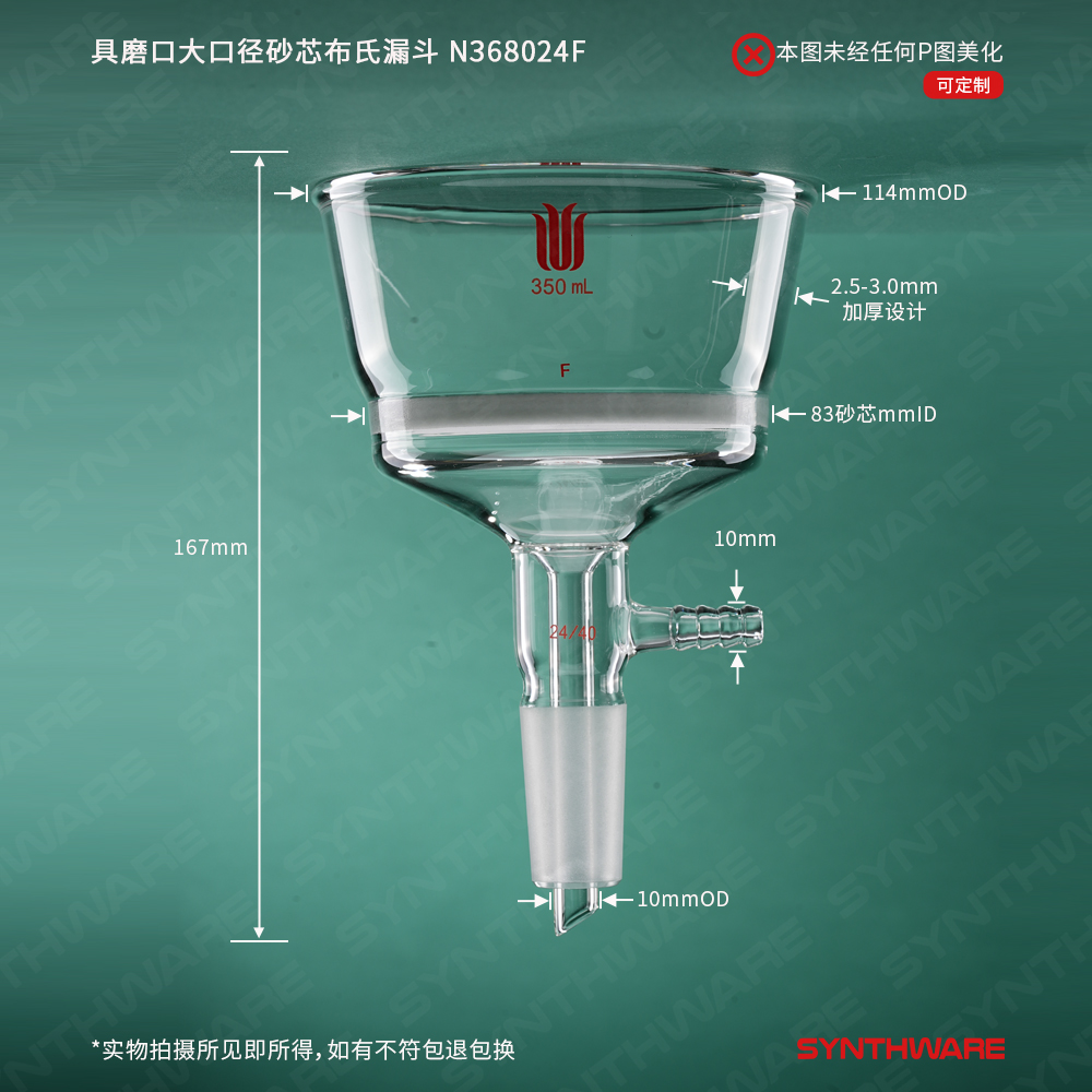 具磨口大口径砂芯布氏漏斗,350ml,24/40,砂芯孔隙规格:G3 N368024M