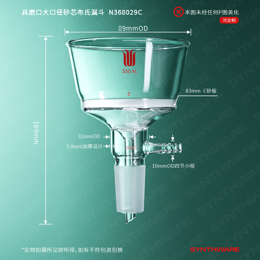 具磨口大口径砂芯布氏漏斗,350ml,29/42,砂芯孔隙规格:G2 N368029C