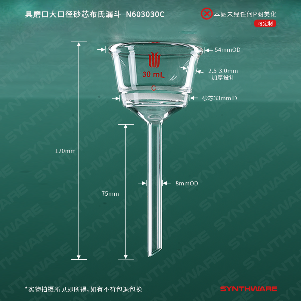 新型广口布氏漏斗,30mL,砂芯孔隙规格:G2 N603030C