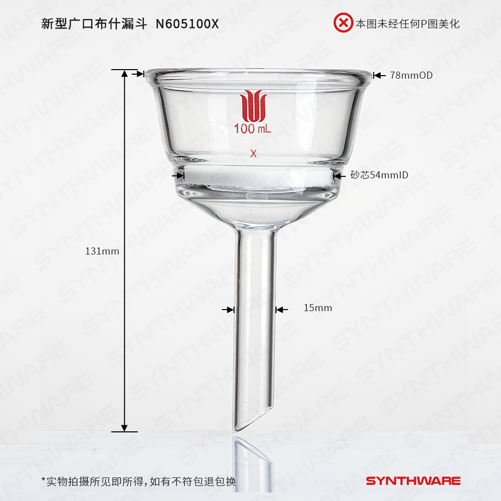 新型广口布氏漏斗,100mL,砂芯孔隙规格:G4 N605100F