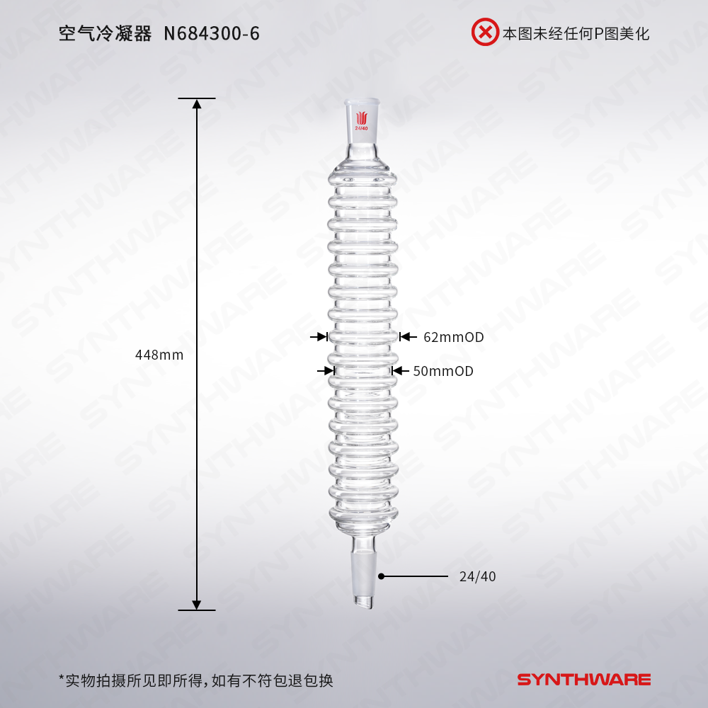 空气冷凝器,磨口24/40,有效长度450mm,最大直径62mm N684450-6