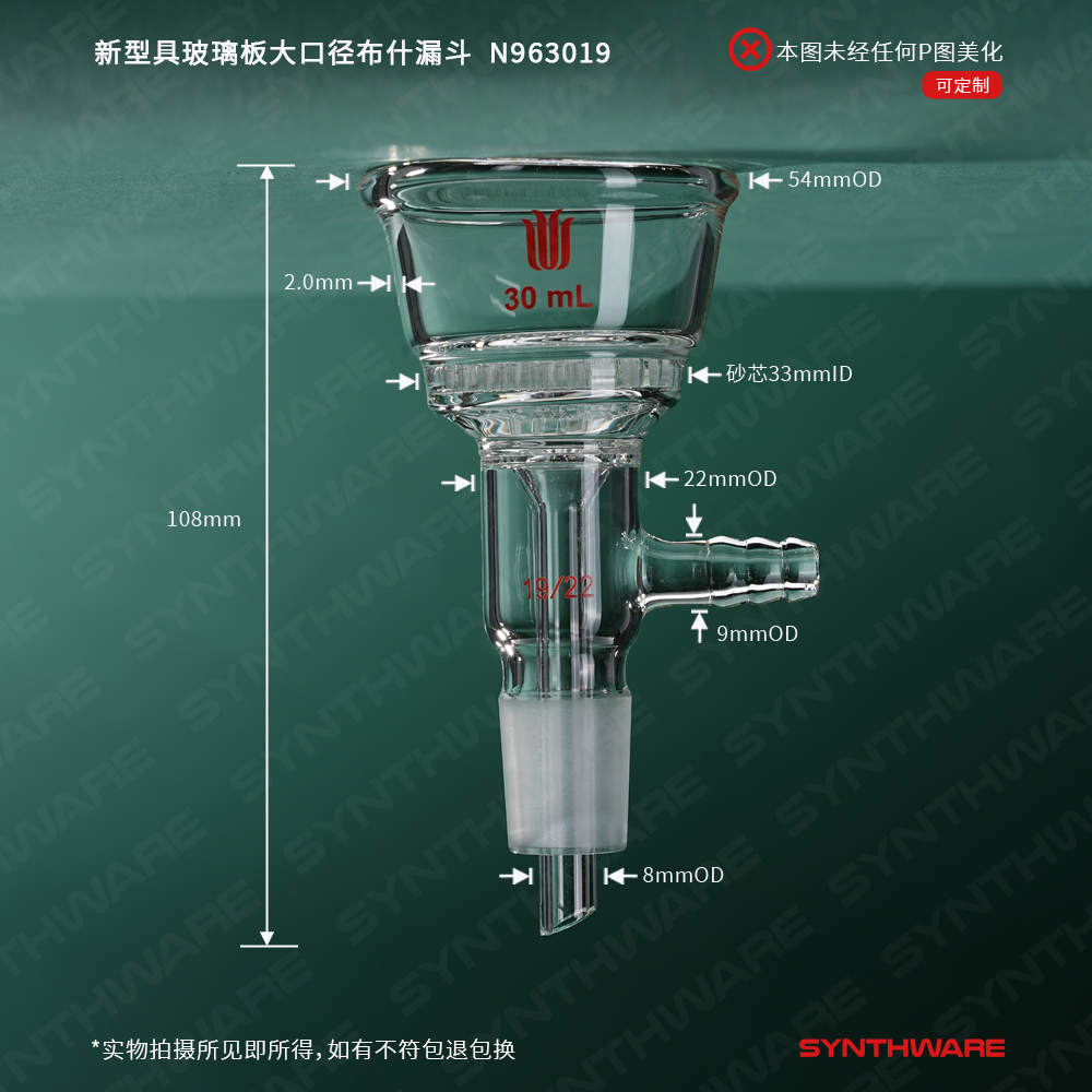 新型具玻璃板大口径布什漏斗,容量:30ml,磨口:19/22 N963019