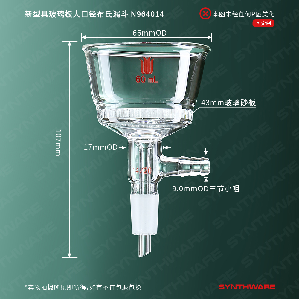 新型具玻璃板大口径布什漏斗,,容量:60ml,磨口:14/20 N964014