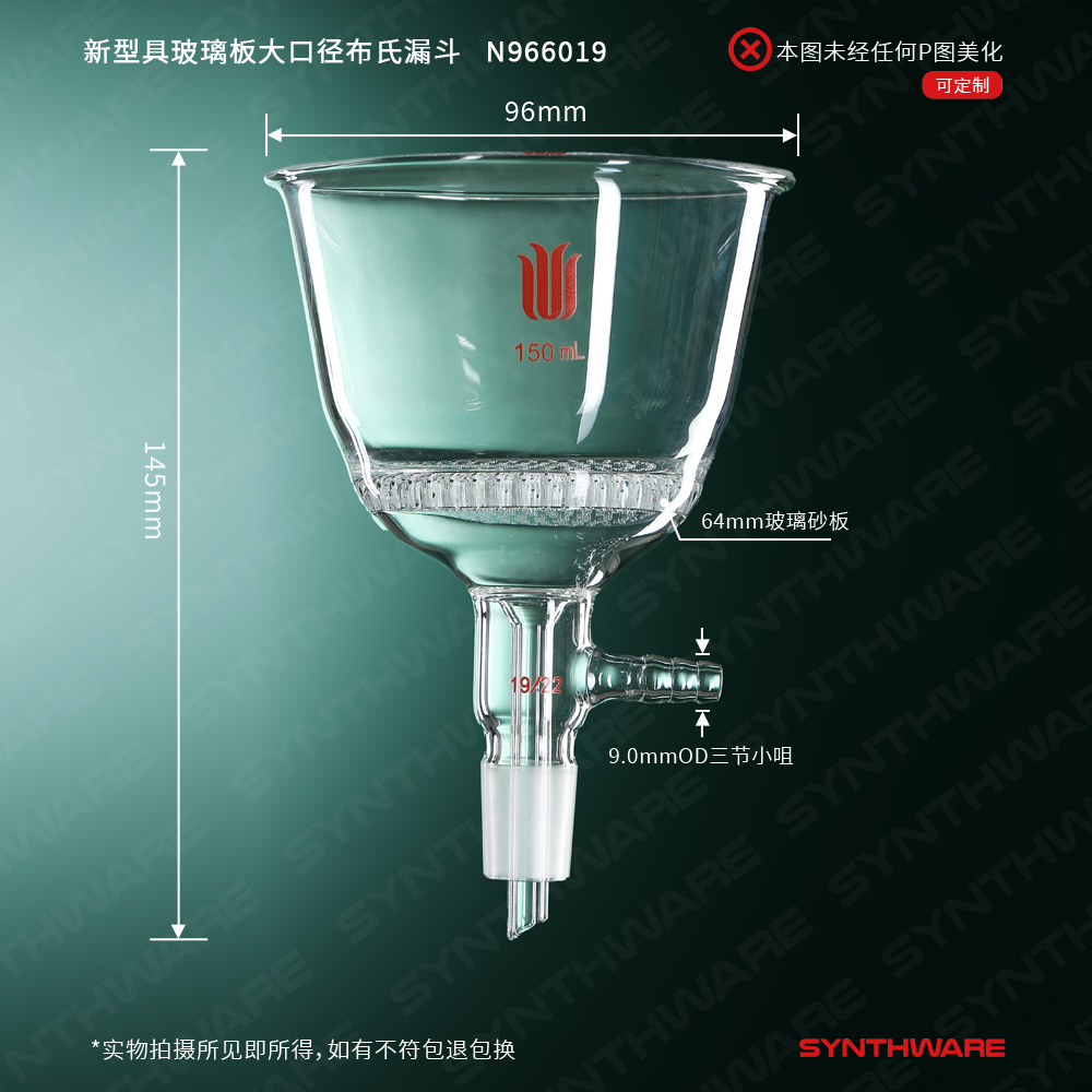 新型具玻璃板大口径布什漏斗,容量:150ml,磨口:19/22 N966019
