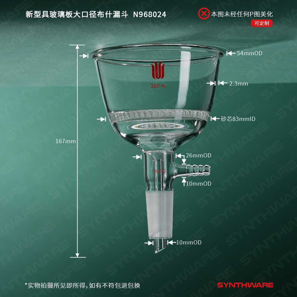 新型具玻璃板大口径布什漏斗,容量:350ml,磨口:24/40 N968024
