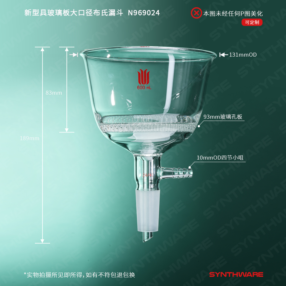 新型具玻璃板大口径布什漏斗,容量:600ml,磨口:24/40 N969024