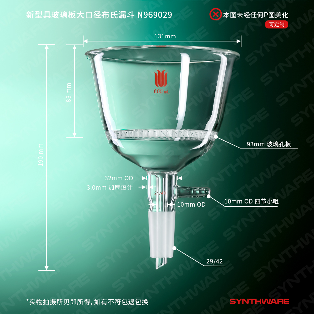 新型具玻璃板大口径布什漏斗,容量:600ml,磨口:29/42 N969029
