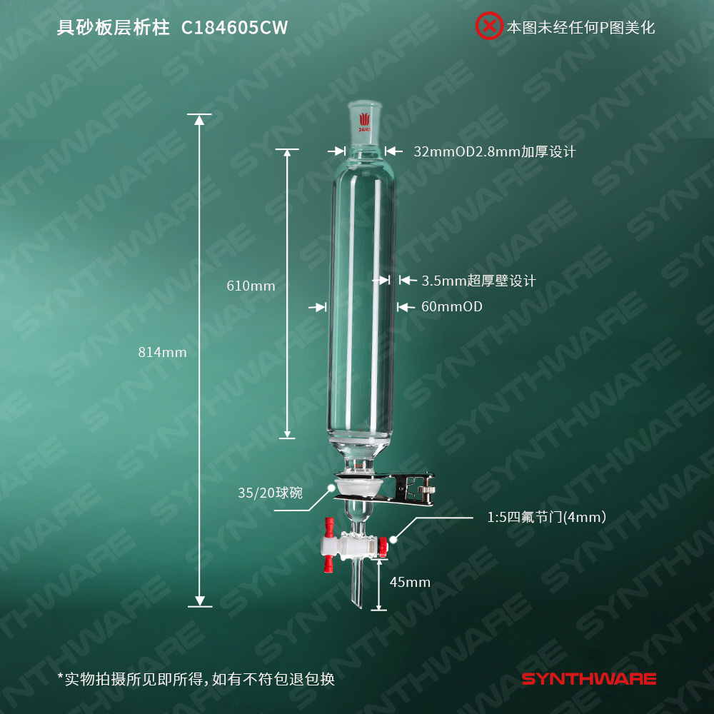 分体式35/20球碗口连接,具砂板层析柱,φ60mm,有效长610mm,节门孔径:4mm,24/40 C184605CW