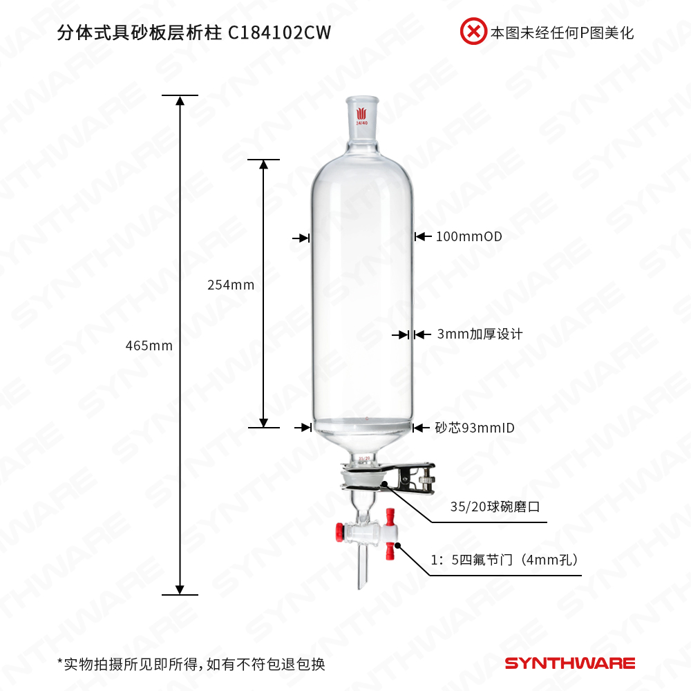 分体式35/20球碗口连接,具砂板层析柱,φ100mm,有效长800mm,节门孔径:4mm,24/40 C184106CW